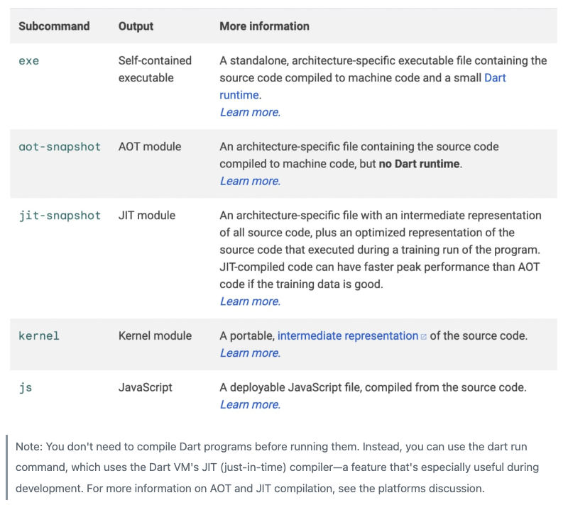 이번에는 Dart 공식 문서에서 컴파일의 세부 사항을 살펴보겠습니다.