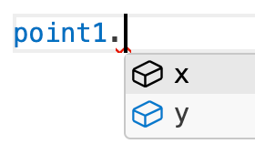 point1.을 입력하는 순간, Point가 가진 x와 y 속성만 딱 보여주죠.